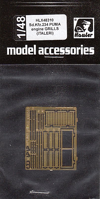 Leider hat Italeri die 1/48 Militärreihe nicht weiter fortgesetzt. Glücklicher Weise sind aber bereits einige sehr interessante Modelle erschienen, bei denen sich eine weitere Detaillierung lohnt. Für das Sd.Kfz 234 Puma von Italeri brachte Hauler vor einiger Zeit Ätzteilsätze heraus. Der hier vorgestellte Satz ersetzt die Motorlüftungsgrills auf dem Heck des Fahrzeugs.