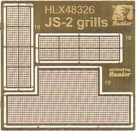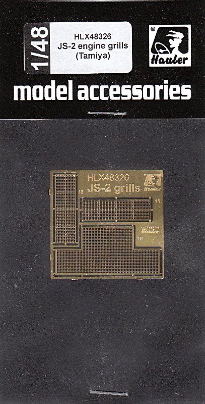 Für den Josef Stalin 2 von Tamiya hat Hauler vor einiger Zeit einige Ätzteilsätze heraus gebracht. Der hier vorgestellte Satz ersetzt bzw. ergänzt die Motorlüftungsgrills auf dem Heck des Fahrzeugs.