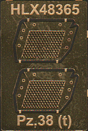 Der kleine Satz enthält zwei Grills für die Motorlüfterabdeckung des Tamiya Modells. Die Gitterstruktur ist o.k. un wird nach dem Alterungsprozess überzeugend wirken.