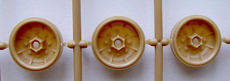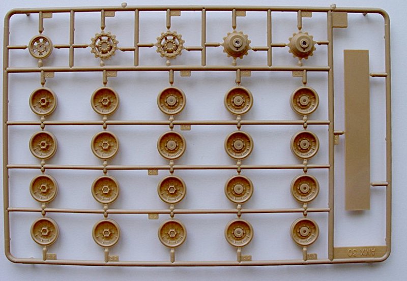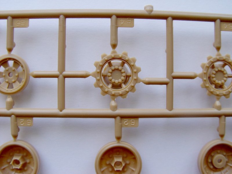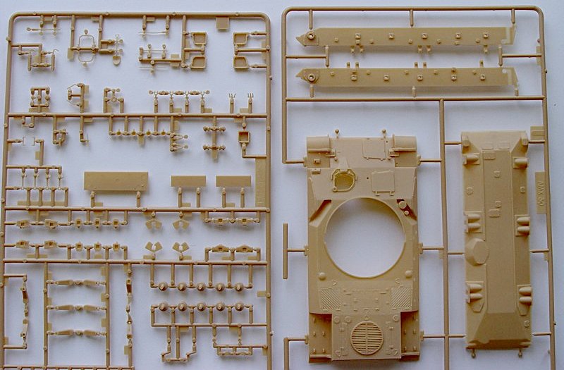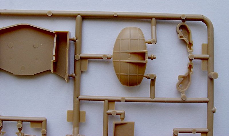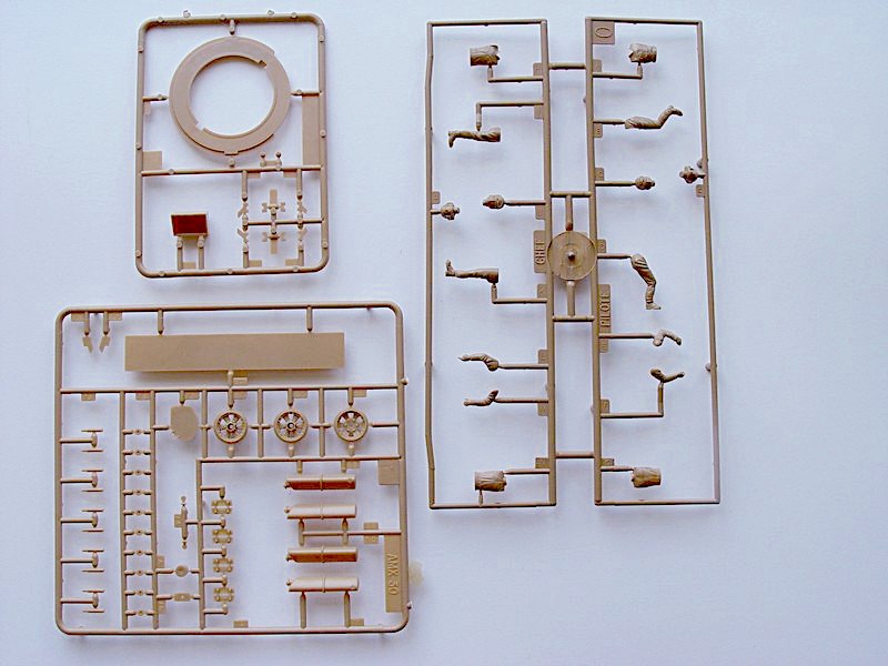 - 5 große und 3 kleine Spritzrahmen aus gelbem Kunststoff. Die Rahmen sind sauber gegossen. Einige Bauteile weisen Auswerferstellen und Grat auf.