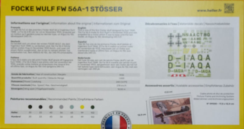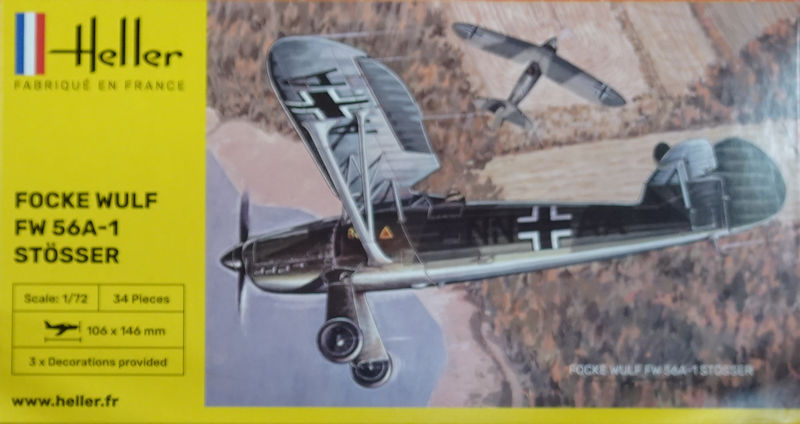 Bausatz: 1977 brachte Heller erstmals die Focke Wulf Fw 56A-1 im Maßstab 1/72 heraus. Sicherlich war das damals schon mutig, denn das Vorbild ist ja nicht unbedingt sehr bekannt. Vielleicht hat das auch den Grund warum bis heute kein weiterer Hersteller dieses Thema angefasst hat. Aktuell hat die Heller GmbH seinen Sitz im Hause von Glow2b in Radevormwald.