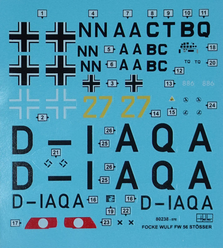 Bei den Farbangaben bezieht sich die Bauanleitung auf das eigene Farbsortiment. Alternativen oder einen Verweis auf RLM-Töne gibt es leider nicht. Der Decalbogen ist tadellos gedruckt.