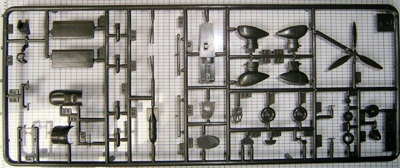 Der Bausatz verfügt (bis zum Erscheinen des HobbyBoss Bausatzes als einziger!) über ein Klarsichtteil für das Rumpfboden-Fenster. Daneben warteten die 61 Teile mit Details, wie einem Armaturenbrett mit erhabenen Konturen, einem Steuerknüppel, dem Hocker für den Bordschützen/Funker sowie Lärmgeräten auf. Somit konnte erstmalig im Standardmaßstab ein halbwegs authentisches Cockpitinnere angepeilt werden. Selbst bei heutigen Modellen gibt es nicht mehr als Hellers insgesamt sechs Teile. Trotz einfacherer Gestaltung stellte dies seinerzeit einen riesengroßen Schritt nach vorn dar. Ein Fahrwerk mit separaten Rädern oder die Ju-87-typische Abweisergabel für die Bombe und ein Landescheinwerfer waren ebenfalls willkommene Verbesserungen. Selbiges gilt auch für den hier endlich einmal als Einzelteil ausgebildeten Spinner. Somit waren alle Zutaten für einen soliden Basisbausatz vorhanden, zumal auch die Oberflächendetails durchaus zu überzeugen vermochte.