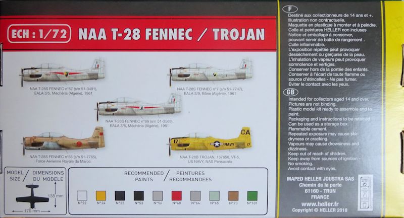 Vorbild: Die T-28 wurde als Trainer für die Vorbereitung auf die Strahlflugzeugausbildung konzipiert. Daher verfügte die Ganzmetallkonstruktion über Tandemsitze und ein lenkbares Bugradfahrwerk. Am 24. September absolvierte sie ihren Jungfernflug. Bei den US Streitkräften flog sie für die Luftwaffe bis 1956. Die Navy nutzte ihre T-28C mit verstärktem Rumpf und Fanghaken bis 1982.