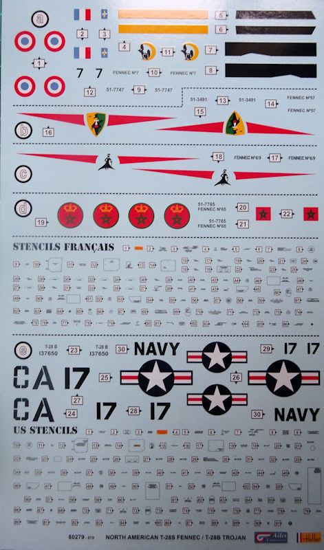 Der umfangreiche sauber gedruckte, Abziehbilderbogen von Cartograf ist der eigentliche Höhepunkt des Bausatzes. Er bietet nicht nur die Abzeichen für fünf Maschinen, sondern auch die Wartungshinweise in Englisch und Französisch. Für deren Platzierung gibt es mehrere ganzseitige farbige Darstellungen.