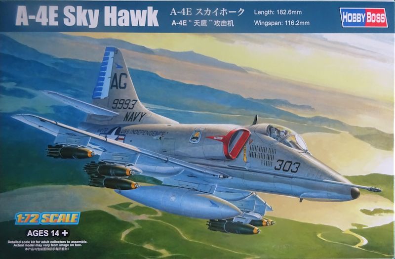 Vorbild: Die einstrahlige Douglas A-4 Skyhawk war als preiswerter Jagdbomber für den Einsatz von Flugzeugträgern konzipiert. Als der Konstrukteur Ed Heinemann die A-4 vorstellte, sagten ihm viele Experten, dass dieses Flugzeug scheitern werde, da es zu klein und zu leicht sei: der Entwurf wog nur 2,5 Tonnen. Nach dem Erstflug am 22. Juni 1954 zeigte sich jedoch ein anderes Bild: Es wurden bis 1979 2960 Exemplare gebaut. Die A-4E hatte ein stärkers Triebwerk und zwei Waffenträger mehr als ihre Vorgänger.(Wiki)