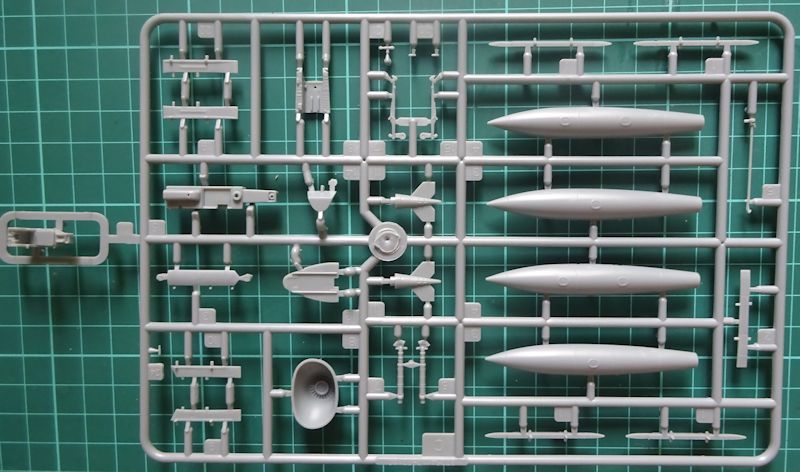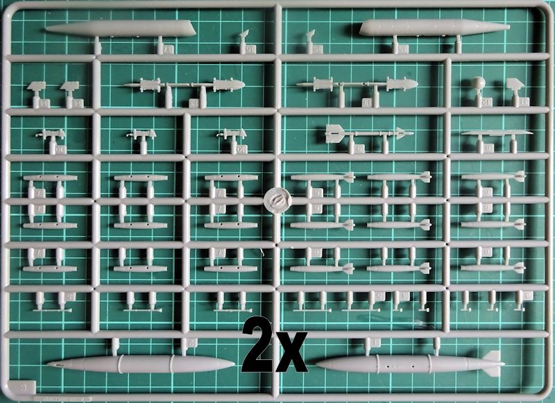 Die Hälfte der Bauteile befinden sich auf den beiden Waffenästen. Neben Zusatzbehältern gibt es zwei Sidewinder und 12 Mk-82 Bomben.