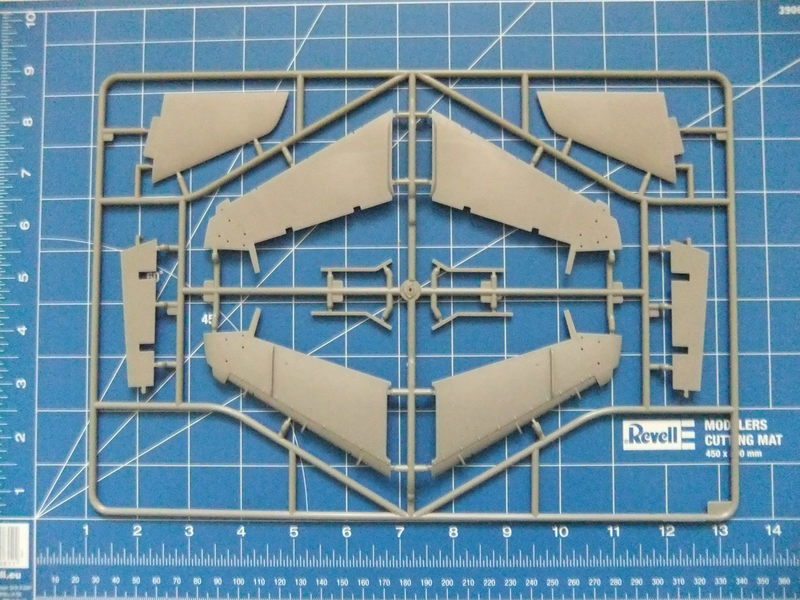 Was bietet der Bausatz sonst noch? Neben einer authentischen Cockpiteinrichtung auch das komplette DIANE Navigationsradar im Bug, die seitlichen Einstiegsleitern, Hilfsgeneratoren beidseitig am Rumpf sowie die ausgefahrenen Luftbremsen (Speed Breaks). Wer die Tragflächen eingeklappt darstellen möchte wird mit einer gut detaillierten inneren Mechanik und der Möglichkeit, wahlweise sämtliche Steuerklappen, abgesenkt oder in neutralen Zustand, zu montieren bedient. Auch an den Flügelenden befinden sich Luftbremsen, die in ausgefahrener Position angebaut werden können.