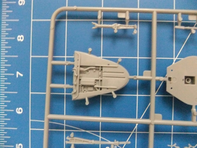Bausatz: Zusammen mit den Messingätzteilen erwarten den Bastler 13 graue Gussrahmen mit ca. 500 Einzelteilen, die auf den Zusammenbau zu einem außergewöhnlich komplexen Modell der Intruder warten. Nicht nur die präzise Fertigung der Einzelteile versprechen viel Bastelspaß, sondern auch die feinen Gravuren können überzeugen. Wobei die Teile auch hoffentlich so gut passen, wie sie auf den ersten Blick aussehen.