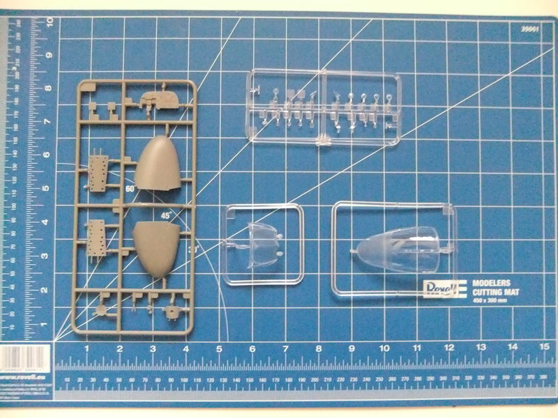 Die extra verpackten Kabinenteile präsentieren sich kristallklar. Für das Fahrwerk sind innere Stützstreben aus Metall vorgesehen und die schon erwähnte Messingplatine vervollständigen unter anderen mit dem korrekt dargestellten Gurtzeug die beiden gut reproduzierten Schleudersitze der Besatzung. Außerdem befinden sich die Trittstufen für die im Rumpf integrierten Einstiegsleitern an der Platine.