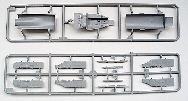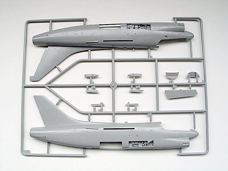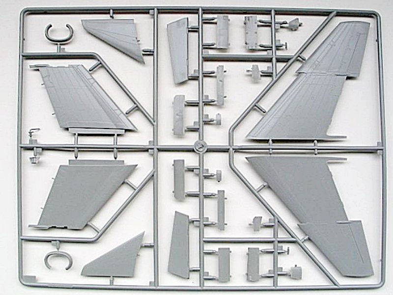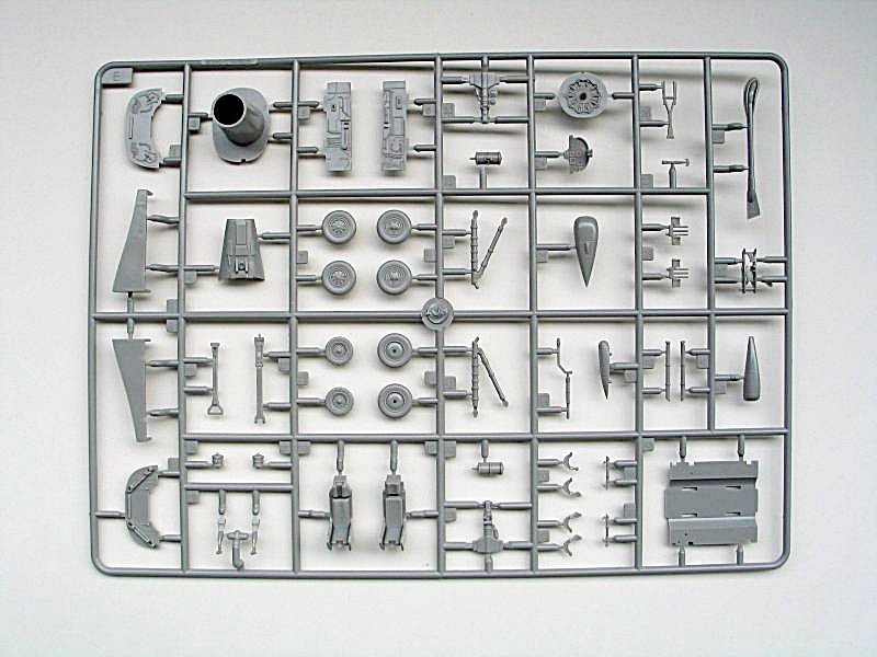 Auch bei diesem Bausatz der A-7 überwiegt der positive Gesamteindruck des Modells. An 8 Spritzlingen befinden sich eine Vielzahl von Polystyrolteilen die es zu verbauen gilt. Die Klarsichtteile wie Cockpithaube und das Head up Display sind auf drei kleine Gussästen verteilt. Alle Spritzlinge sind einzeln wie heute schon üblich in Klarsichttüten verpackt. Leider liegt dem Bausatz kein Ätzteilbogen für die Darstellung der Gurte und der Rückspiegel des Piloten bei. Schade! Bestimmt werden hier einige Ätzteil-Hersteller bald Abhilfe schaffen.