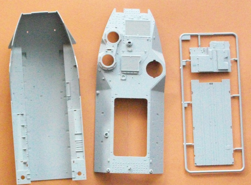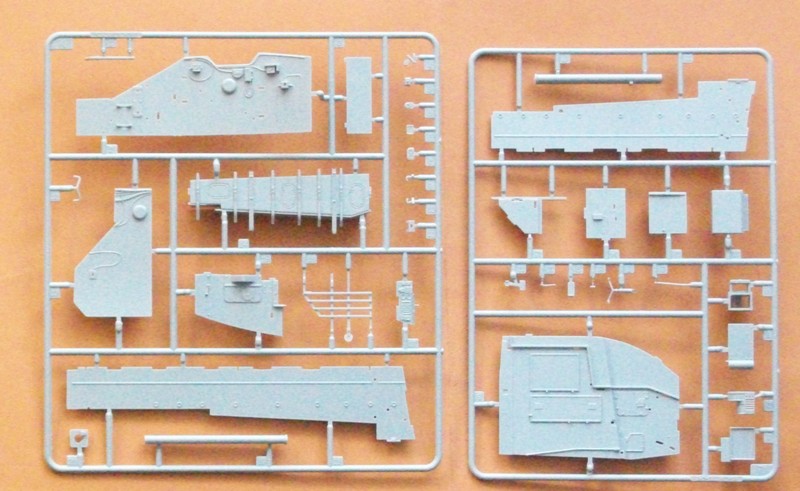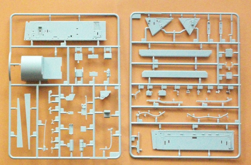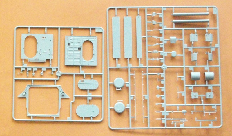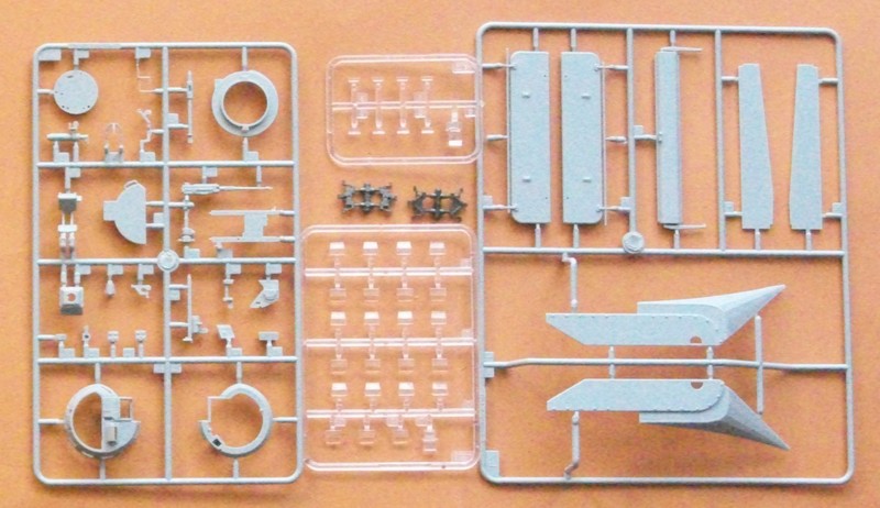 Die Teile des Bausatzes sind teilweise sehr filigran und sauber gespritzt, fast die Hälfte der Bauteile betrifft die Inneneinrichtung, Die Passgenauigkeit von Ober- und Unterwanne ist sehr gut.