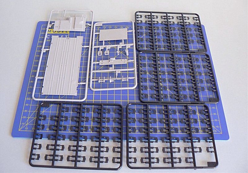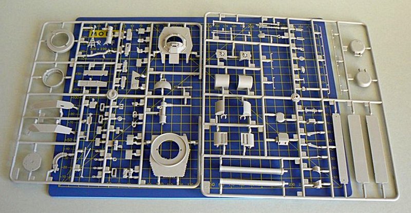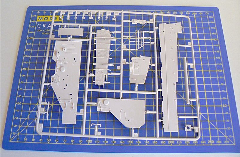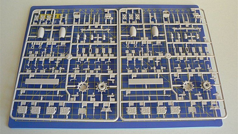 Da ich schon einige Bausätze der anderen Versionen des AAVP- 7 in meinem Besitz befinden, wusste ich was mich erwartet. Der Karton ist vollgepackt mit unzähligen Spritzgussrahmen. Besonderes Highlight der Bausätze des AAVP von HOBBY BOSS sind die komplette Inneneinrichtung und die Einzelgliederkette aus Spritzguss.