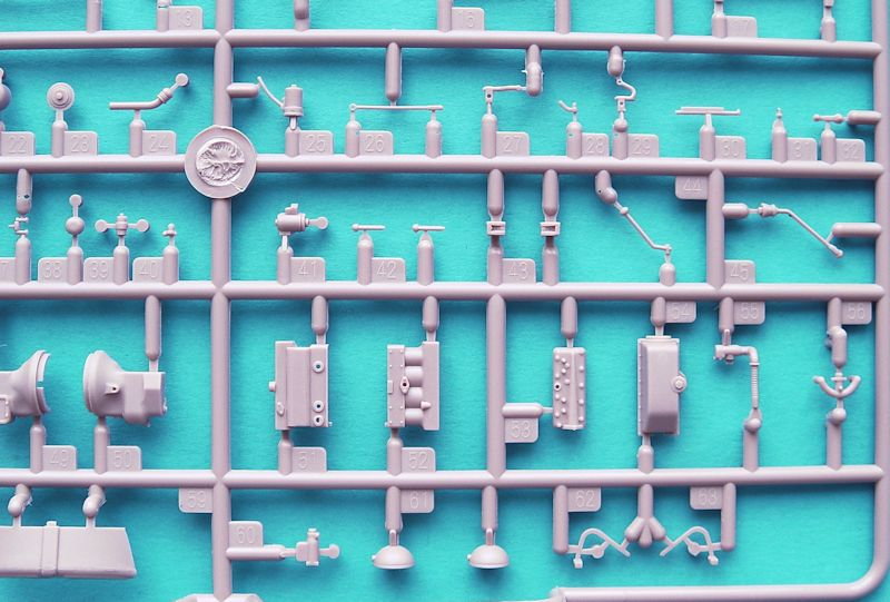 Der Bausatz präsentiert sich wie folgt: Zwei Spritzrahmen im A5 Format und fünf im A6 Format. Aus gelben gut zu verarbeiten Kunststoff. Die Rahmen sind sauber gegossen.