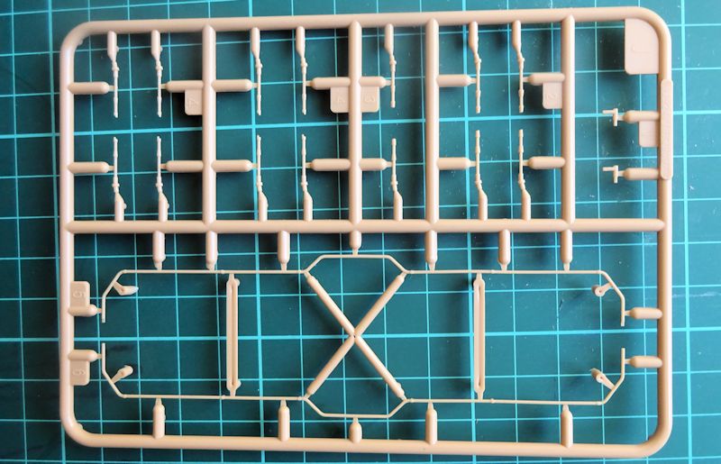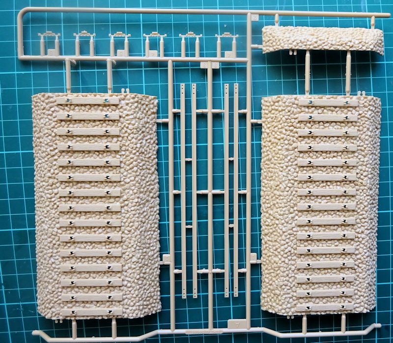 Die Stülpschachtel mit einem dekorativen Bild enthält vier sandfarbene gut detaillierte Spritzlinge, zwei größere und drei kleinere sandfarbene Einzelbauteile sowie einen Decalbogen. Alle Teile sind einzeln in Folie eingeschweißt.