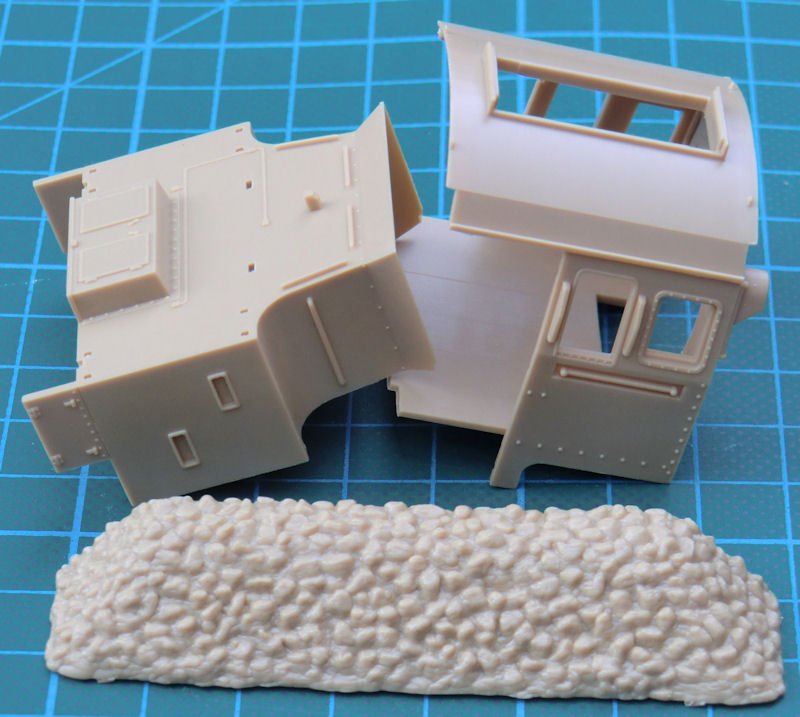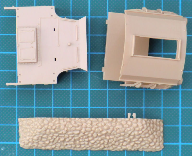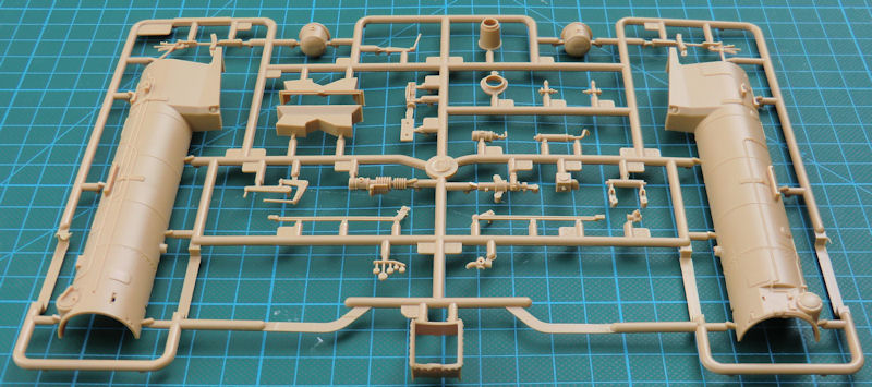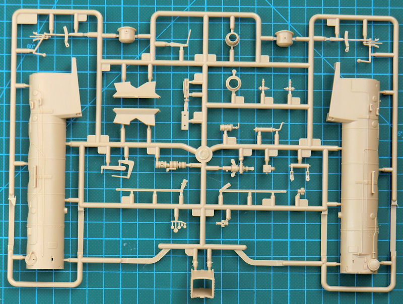 Das Lokführerhaus ist von Außen sehr filigran. Innen ist nur der Kessel sehr detailliert worden. Es gibt für Freaks Potential zur Nachdetaillierung. Wenn man eine ÜK 86 bauen möchte, dann muss das erste Fenster auf jeder Seite verschlossen werden. Dafür kann man gut das vorhandene Klarsichtteil nutzen. Der Kohlebunker ist nackt. Hier gibt es im 1/87er Bereich mehr als genug Möglichkeiten. Das obere Dachteil wird separat aufgeklebt. Die Wasserkästen sind oben mit Riffelblechnachbildungen ausgestattet.