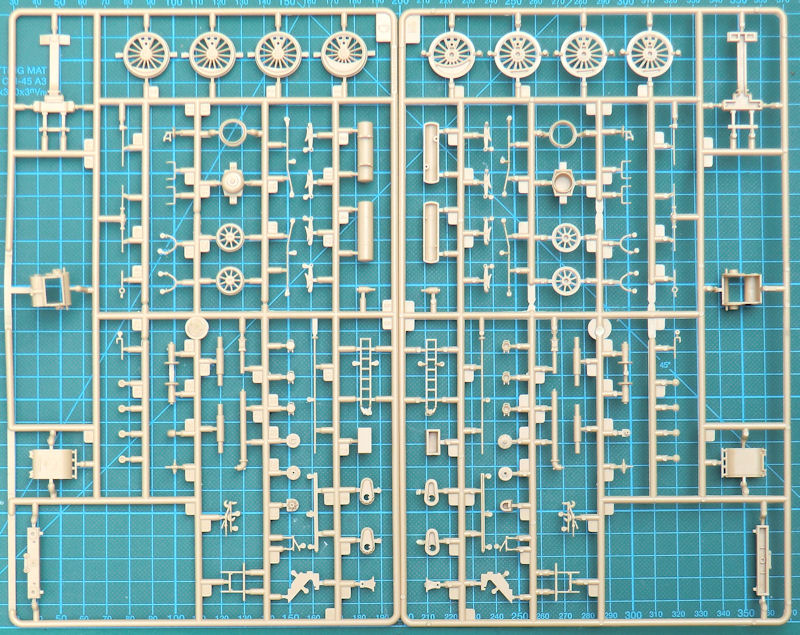 Die Abspritzung und Detaillierung der Bauteile ist sehr gut. Natürlich haben die Chinesen auch alles sehr ordentlich verpackt. Man hat nach dem Betrachten der Bauteile Mühe alles wieder in den Stülpkarton zu bekommen. Vor dem Bau sollte man sich gründlich mit dem gewählten Vorbild auseinandersetzen. Bei der BR 86 beginnt der Bau mit der Präsentationsfläche. Es gibt ein gut gelungenes Gleisset. Dieses ist aus anderen Bausätzen bekannt.