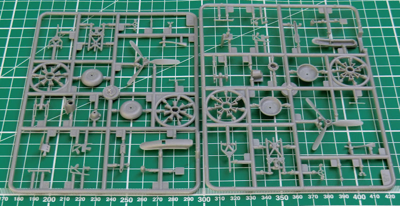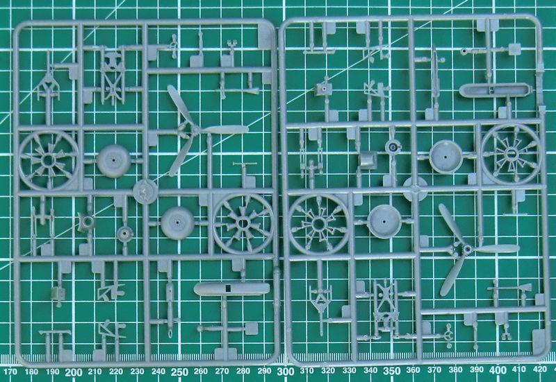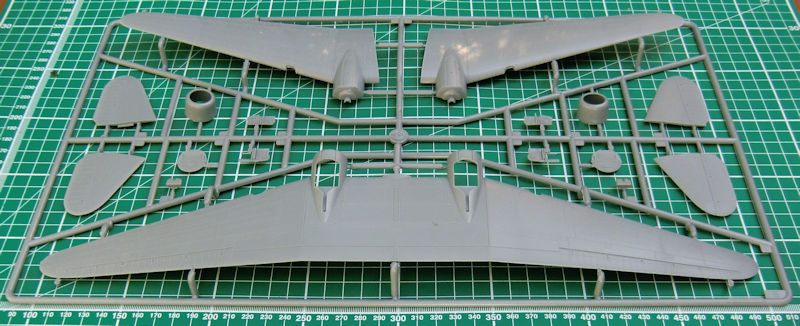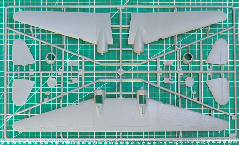 Aus vier Teilen entsteht jeder gut detaillierter Hauptfahrwerksschacht. Die beiden Sternmotore entstehen aus jeweils drei Teilen. HobbyBoss hat die Motorverkleidungen einteilig produziert. Trotzdem haben die Kühlluftklappen scharfe Kanten. Die Lufteinläufe unter den Motorgondeln sind einteilig und werden separat eingeklebt.