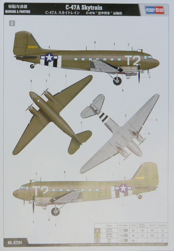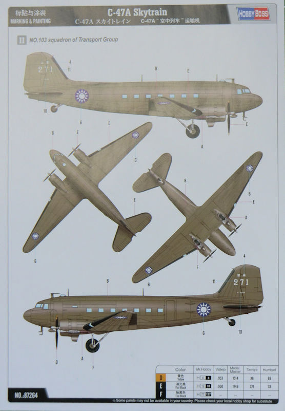 Fazit: HobbyBoss liefert hier einen ordentlichen Bausatz der C-47A in 1/72! Er ist durchaus sehr zu empfehlen! Leider gibt es kaum Hinweise zum Original und nur die nötigsten Decals.