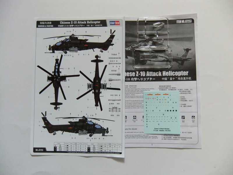 Der hervorragend gestaltete Bausatz der Z-10 besteht aus 152 Einzelteilen und verspricht eine Menge an Bastelspaß. Besonders die markante radarabsobierende Form des Rumpfes ist gut getroffen. Zu den vielen Details, mit welchen der Hubschrauber den Bastler in diesem Maßstab überhäuft, gehören eine Vielzahl von Waffenoptionen für die Stummelflügel, Sensoren bis zum Abwinken sowie ein originalgetreuer Rotorkopf.