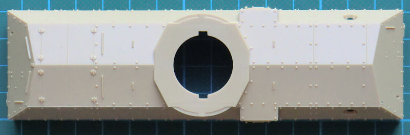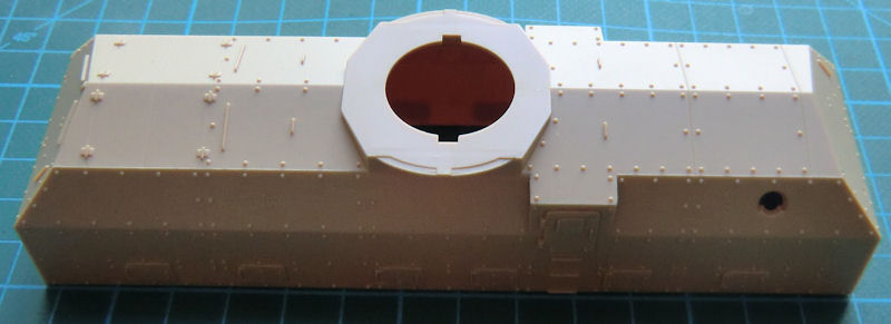 Das Modell ist wie das Original sehr einfach aufgebaut. Der Panzeraufbau besteht aus einem Stück. Es gibt auf der Oberfläche ein paar Panzernieten und aufgeprägte Strukturen. Innen ist das Modell hohl und alle Klappen bleiben zu.