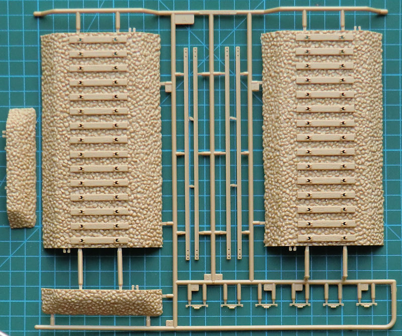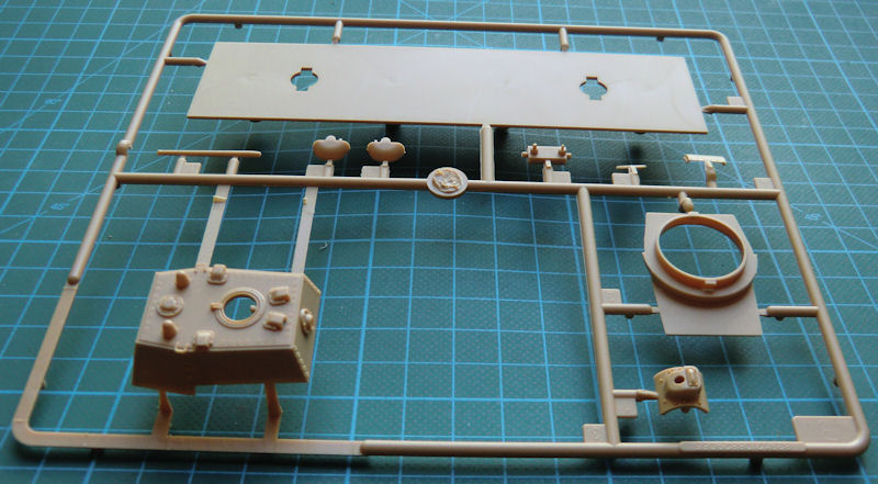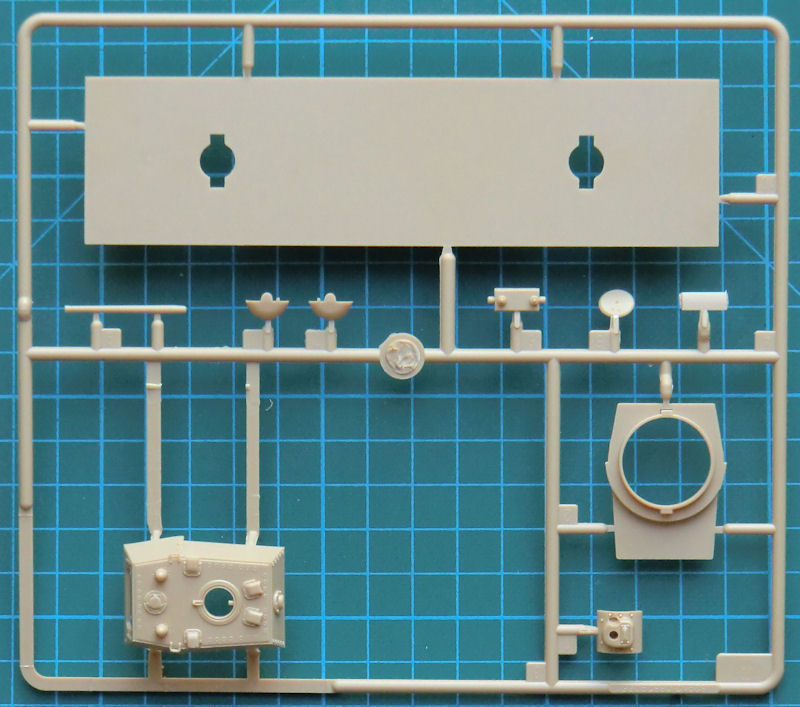 ei den Drehgestellen wurden auch nur Details nachgebildet, die von der Seite zu sehen sind. Ansonsten sind auch diese funktionell leicht zusammenzubauen. Die Puffer sowie die Kupplungen sehen sehr fein und detailliert aus. Der Turm ist auch sehr gut getroffen und voller Details. Die Kanone kann beweglich bleiben und die Mündung des Rohres ist hohl. Sehr gut! Weiterhin ist eine Turmluke einzeln einzukleben. Die drei MGs sind fein. Das Gleisstück ist aus dem HobbyBoss-Fundus und sieht ein wenig künstlich aus.