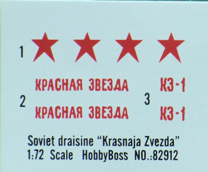 Der kleine Decalbogen ist tadellos auf hellblauem Trägerpapier gedruckt. Das Cover zeigt eine weiß übergetarnte Draisine und in der Bemalungsanleitung ist sie einfarbig grün. Es gibt keine weiterführenden Informationen zum konkreten Vorbild.