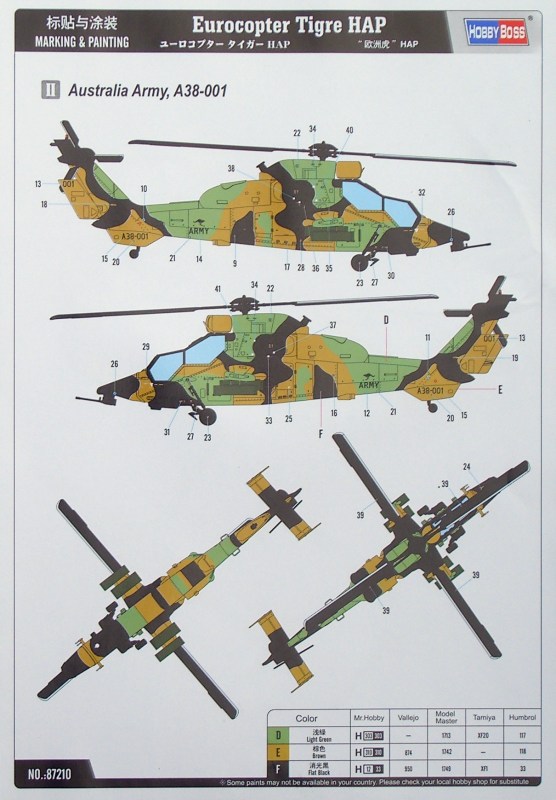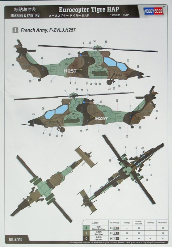 Die restlichen Bauteile sind auf recht hohem Niveau detailliert und die übersichtliche Bauanleitung zeigt wie alles montiert wird. Die Farbangaben sind für die Systeme von Mr. Hobby, Vallejo, ModelMaster, Tamiya und Humbrol.