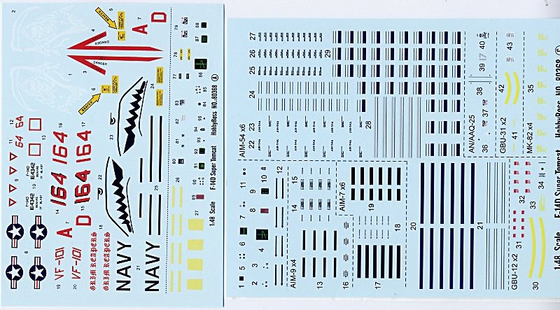 Bemalungsvarianten: Der Decalsatz erlaubt den Bau von zwei F-14 D Tomcats: