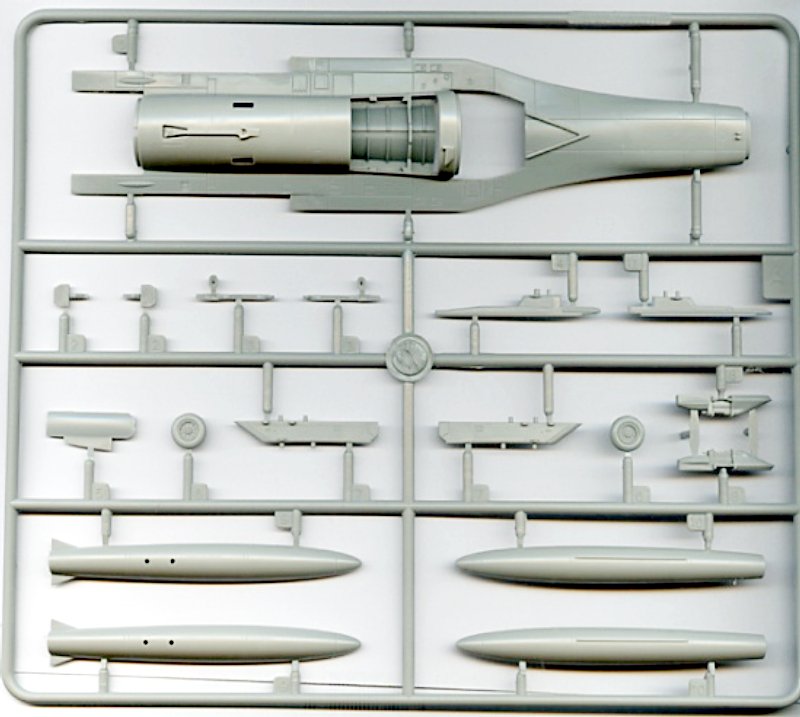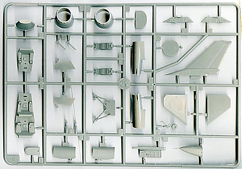 Als versionsspezifischen Gußäste liegen die Cockpitverglasung und das Rumpfoberteil bei. Die anderem drei Rahmen sind identisch.
