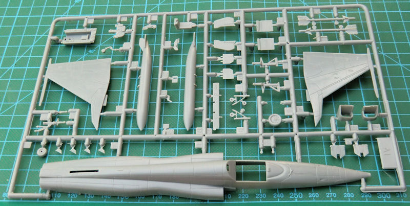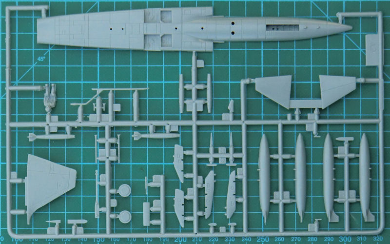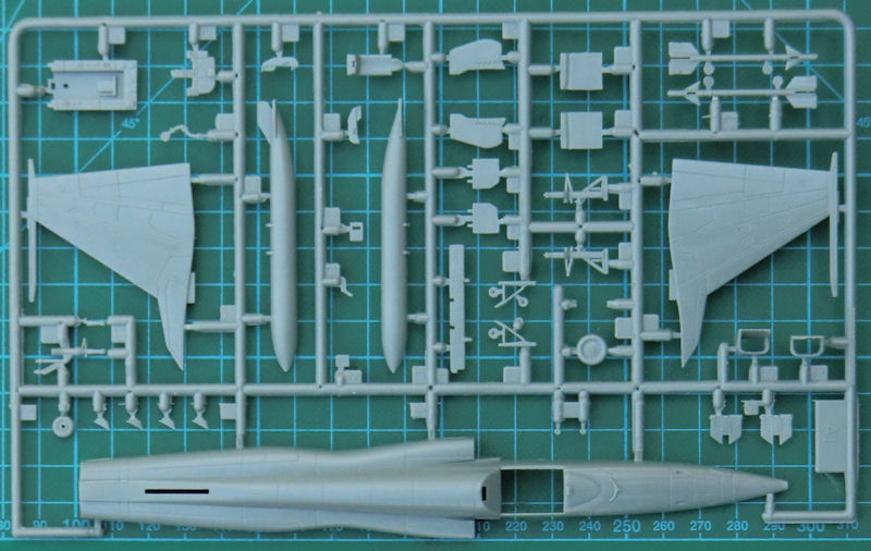Für Modellbauer gut zu handhaben sind die Tragflächen, das Seiten- und das Höhenleitwerk. Diese bestehen aus einem Teil uns haben damit scharfe Hinterkanten. Die Lufteinläufe gibt es als separate Bauteile. Das Fahrwerk ist etwas klobig. Es gibt für die Tragfläche noch genug Abwurfwaffen wie z.B. Mk. 82-Bomben oder AIM-9-Raketen. Die Kanzel kann alternativ offen montiert werden.