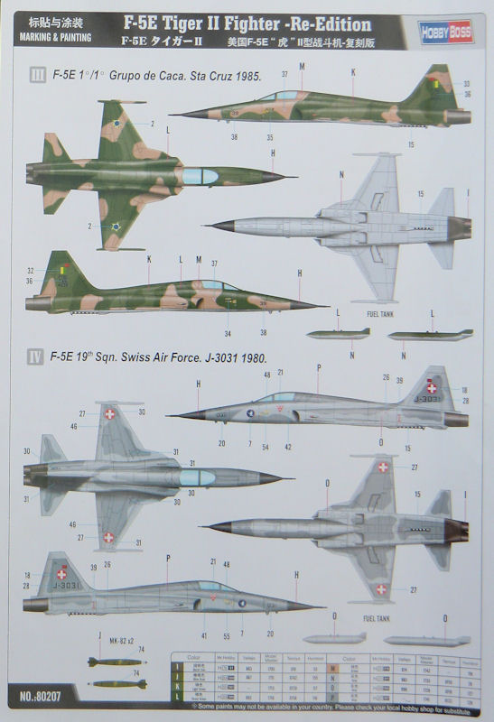 Fazit: Ein etwas einfacher Kit, der durchaus nach F-5E aussieht. Erhältlich sind die Bausätze von HobbyBoss im gut sortierten Fachhandel oder u.a. z.B. bei IBG.