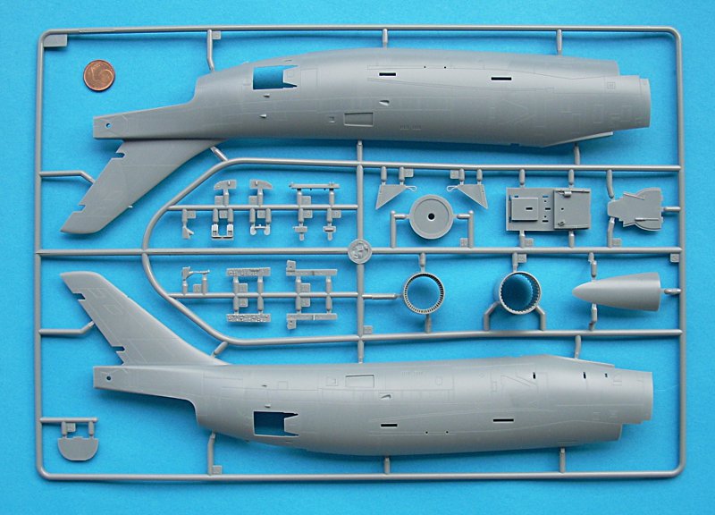 Nun bringt also HobbyBoss eine Demon in Großserienqualität. Die Teile sind sauber ausgespritzt und haben feine versenkte Gravuren. Die vorhandenen Nietenreihen sind wie immer Geschmackssache, ich finde sie bei diesem Bausatz recht gelungen. Die Aufteilung des Bausatzes ist standardmäßig, also 2 Rumpfhälften und die Flächen, wobei aber die Rumpfspitze mit dem Cockpit ein eigener "kleiner Rumpf" ist, um die Lufteinläufe einfacher darstellen zu können – wie gesagt, die Auslegung des Bausatzes scheint gut durchdacht. Ansonsten überraschte mich nur die Größe des Modells .. da fehlt nicht viel zur F-4 Phantom II.