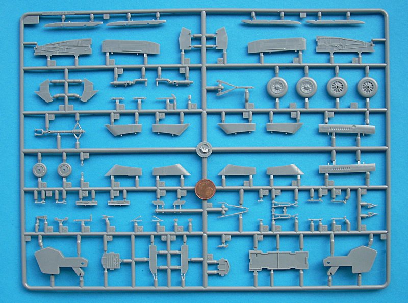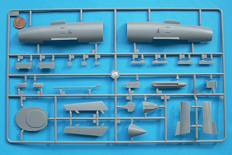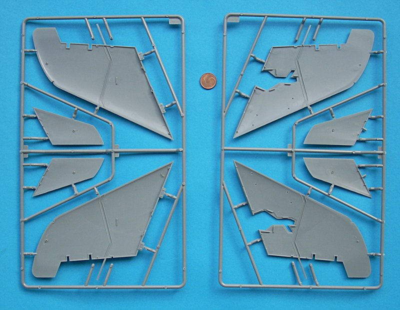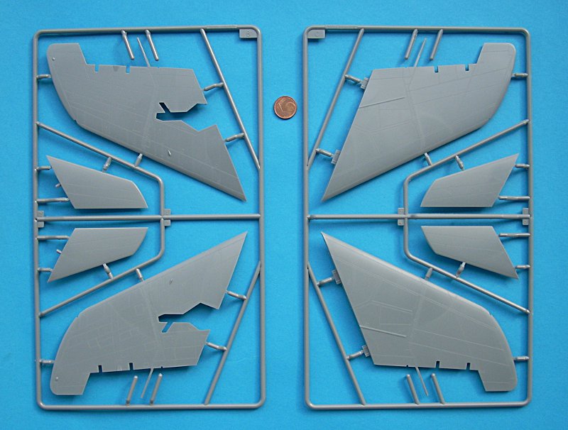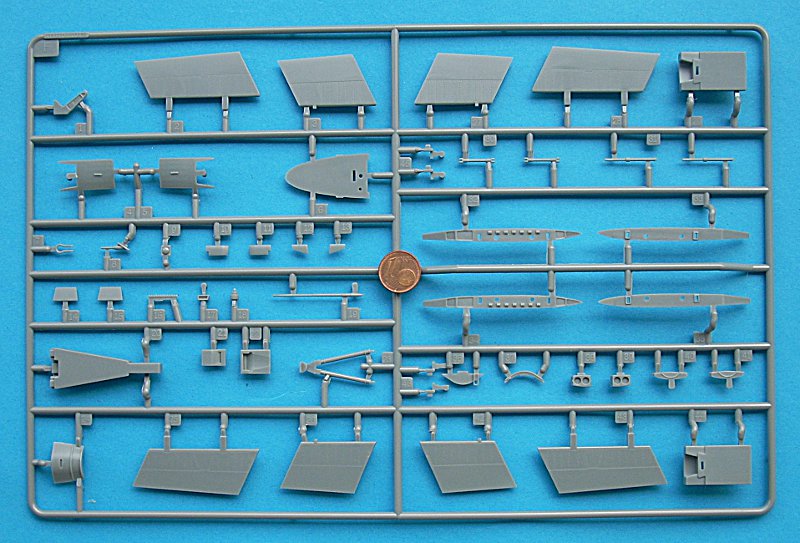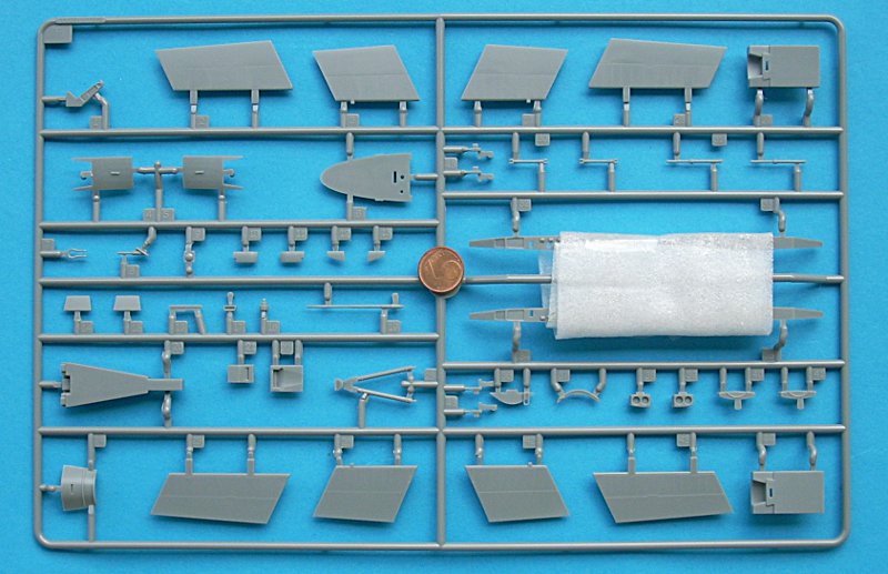 Die Klarteile sind sehr schön dünn und separat in Schaumstofffolie eingepackt und in einem extra Pappabteil untergebracht – sehr gut! Ein Ätzteilbogen liegt dem Bausatz übrigens auch bei. Dieser enthält sinnvolle Teile für Airbrakes und Grenzschichtzäune (die Gurte sind recht ansprechend an die Sitzschale angegossen). Einen Hinweis auf Ballast im Bug habe ich in der Anleitung nicht gefunden, halte es aber für sinnvoll dies zumindest im Rohbau zu testen.