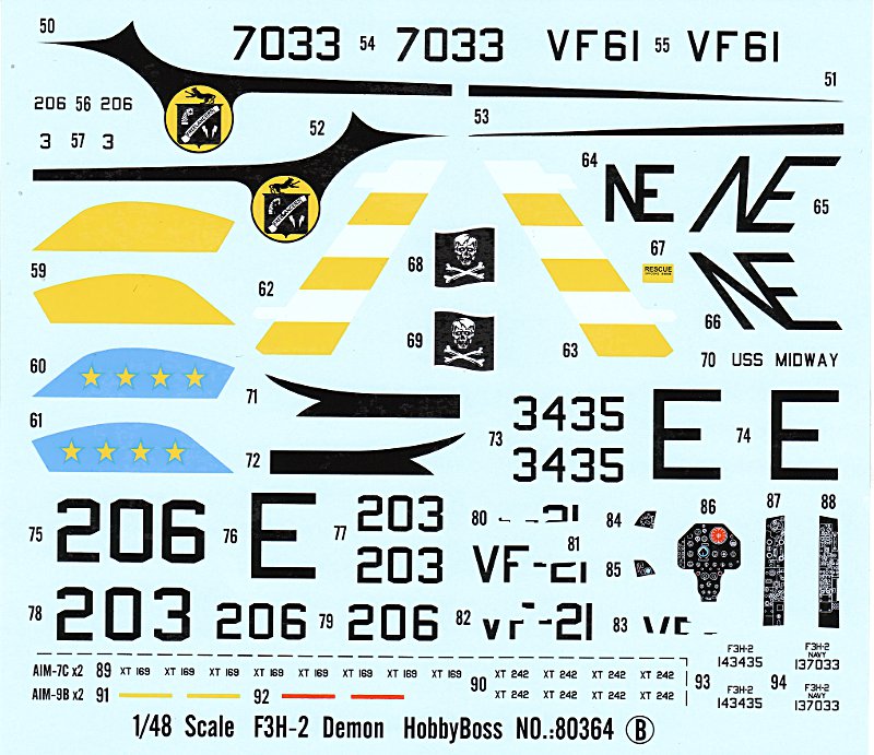Die Decals sind Made in China, etwas verwaschen und die Oberfläche sieht etwas seltsam aus (matt-glänzend gesprenkelt). Es ist also Vorsicht geboten ... oder man sucht gleich was auf dem Zubehörmarkt (ich mag allerdings die VF-31 Markierungen und habe auch auf Flickr ein paar Fotos gefunden).