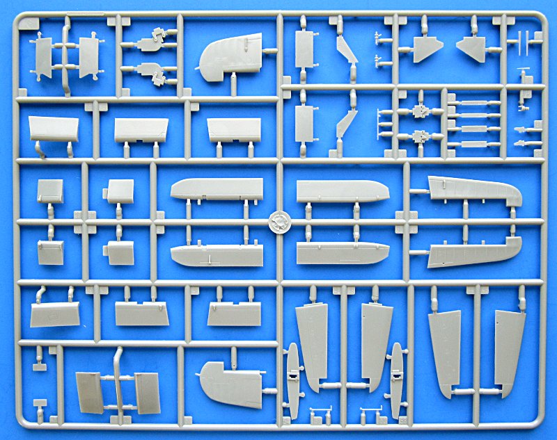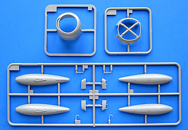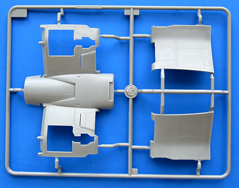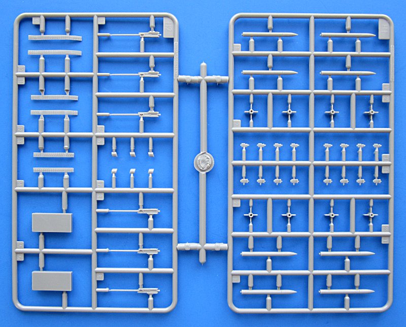 Ansonsten ist der Bausatz aber sehr schön gestaltet. Die Gravur ist scharf. Es gibt nur wenigen Nieten bzw. Verschlussschrauben, was viele sicher freut. Diese sind auch nicht zu übertreiben. Für die Aufhängepunkte unter dem Flugzeug liegen zwei Zusatztanks und 8 HVAR Raketen bei.