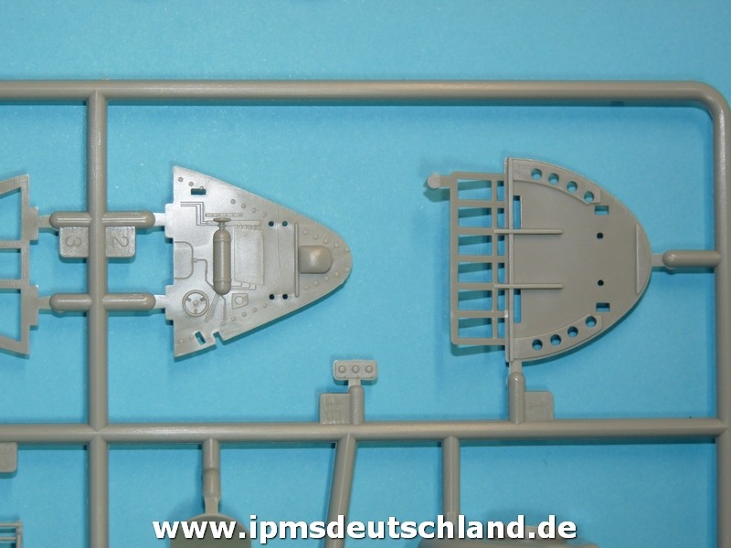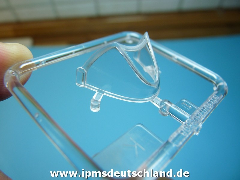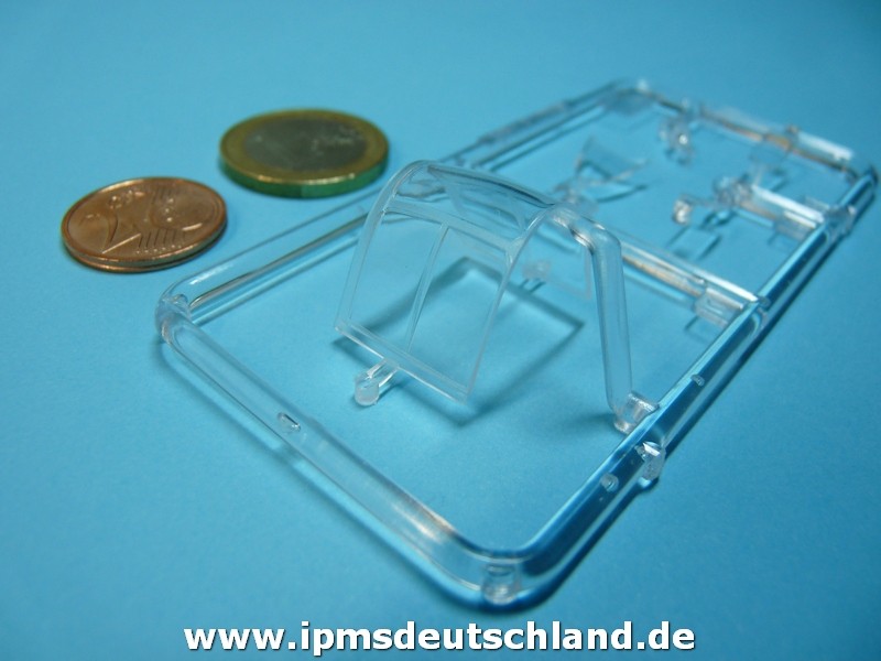 - zweiteilige Kabinenhaube, die aber augenscheinlich nicht zur geöffneten Darstellung gedacht ist (nach Bauanleitung)