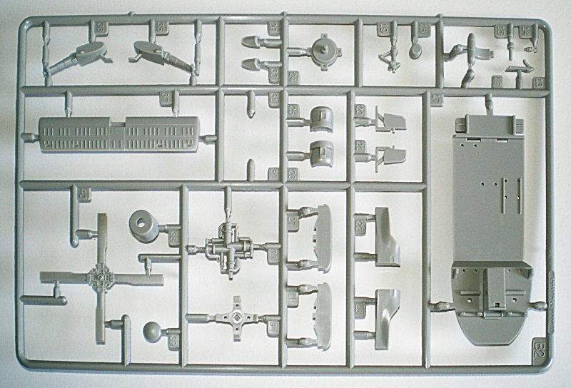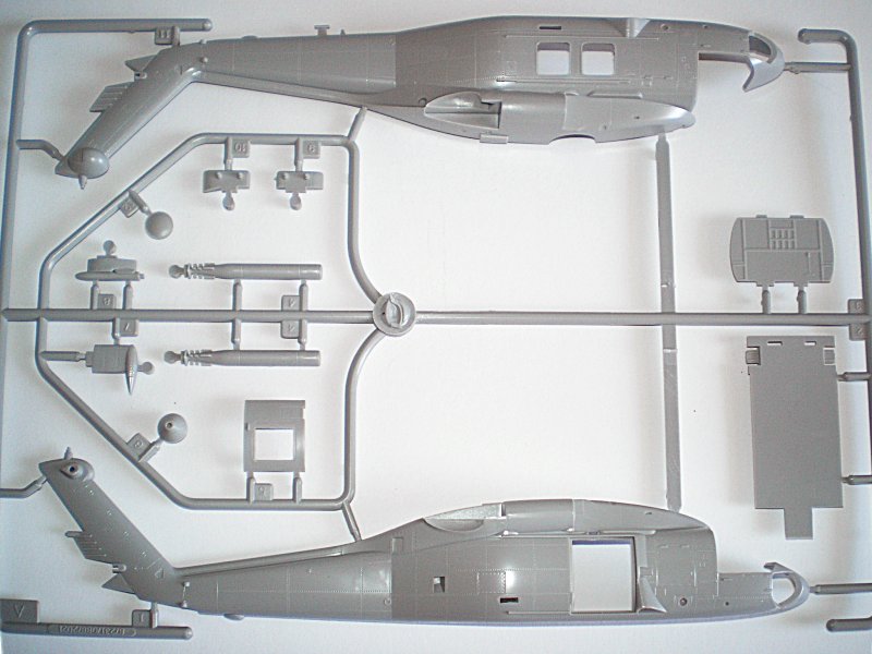 Die überschaubaren Bauteile präsentieren sich sauber abgespritzt und die Detaillierungsvorgabe im Cockpit - Frachtraumberreich ist dem Maßstab entsprechend völlig in Ordnung. Nur die beiden Kollektiven Blattverstellhebel sollten ergänzt werden. Für die SAR Variante bitte die Seitenpanzerung der Pilotensitze weglassen.