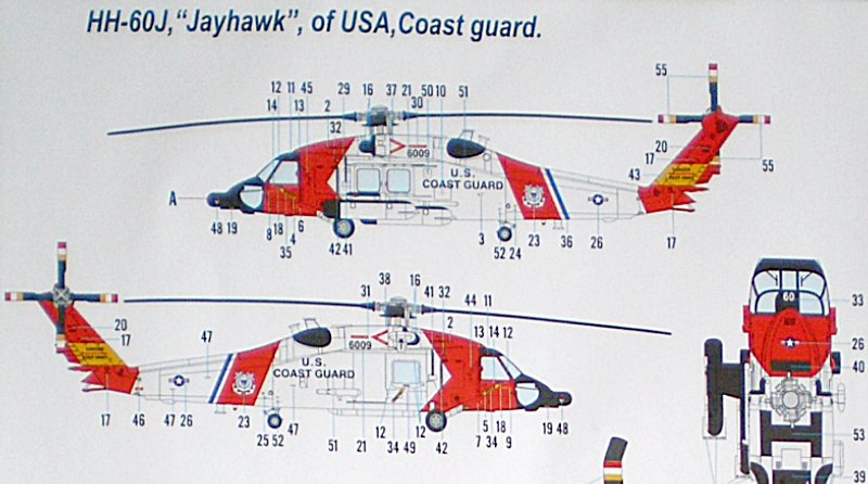 Vorbild: Die HH-60J ist ein speziell für die amerikanische Küstenwache ( Coast Guard ) entwickelter Such- und Rettungshubschrauber, welcher auf die SH-60 Sea-Hawk der U.S. Marine basiert. Die auffälligsten Merkmale dieser Variante sind das Such- und Wetterradar im Bug des Helikopters sowie die markanten 454 Liter (120 US Gallonen) fassenden Reichweitentanks an der Backbordseite der Maschine.
