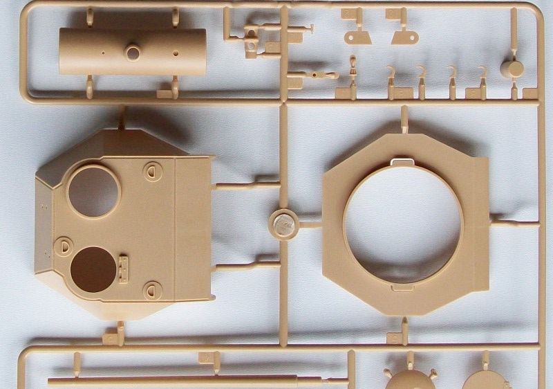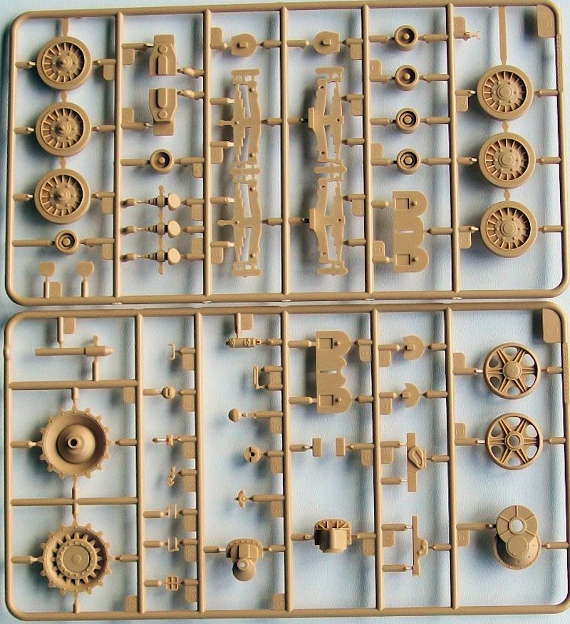 Bausatz: Der Bausatz wird in einem stabilen Karton geliefert. Es ist die Version des Kampfpanzers mit Drehturm und 75 mm KwK 42 L 70. Die Teile sind, wie immer bei diesem Hersteller, gratfrei und sauber gegossen. Die Details sind gut wiedergegeben. Zusätzlich sind Ätzteile für die Lüftergitter, Werkzeug- und Abschleppseilhalterungen vorhanden. Die Kette besteht aus Einzelgliedern. Für das Abschleppseil liegt ein gedrehtes Seil aus Kupferdraht bei. Die Bauanleitung ist übersichtlich und gut gegliedert.