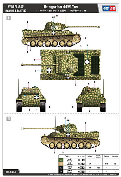 Vorbild: Der Panzer 44M Tas war eine ungarische Entwicklung. Sie sollte die veralteten Turan-Panzer und die Zrinyi-Sturmgeschütze ersetzen. Für den Panzerdrehturm war eine 75 mm Kanone geplant und für die Sturmgeschützversion eine 88mm Kanone. Die Entwicklung startete 1943. Die Serienproduktion sollte im Jahr 145 beginnen. Das Projekt kam nicht über das Prototypstadium hinaus. Die Entwicklung wurde sowohl vom russischen T-34 sowie den deutschen Panther und Jagdpanther beeinflusst.
