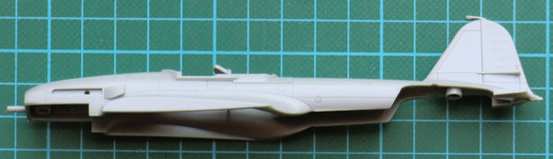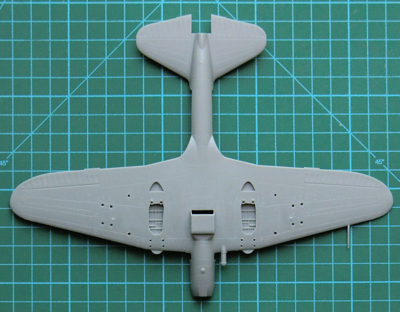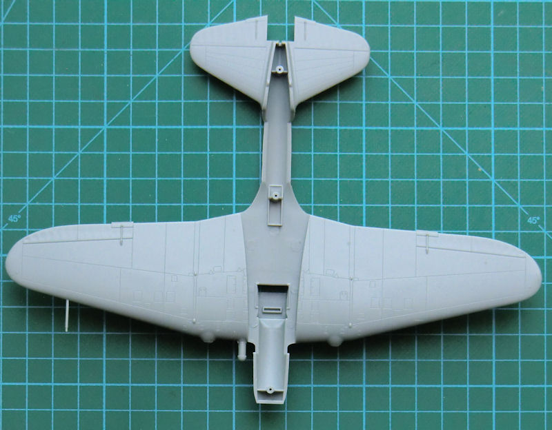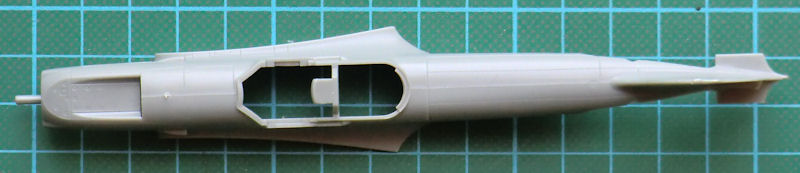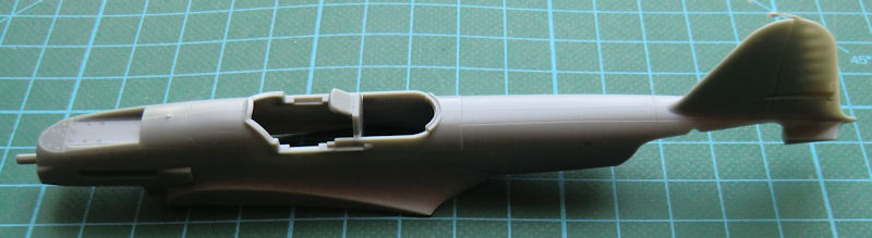 Es ist ein sehr einfacher Bausatz aber die typischen Proportionen der Il-2M3 sind getroffen und markante Details sind auch vorhanden. Beim Zusammenfügen der beiden Großbauteile Rumpf und Tragfläche mit Rumpfunterseite sowie Höhenleitwerk ergibt sich bei den Tragflächenwurzeln jeweils ein Spalt. Sechs Teile gibt es für das Cockpit. Das Instrumentenbrett ist an den Rumpf anmodelliert und wird mit einem Decal versehen. Der innere Lufteinlauf über dem Motor ist natürlich vorhanden und mit dem Cockpitboden verbunden.