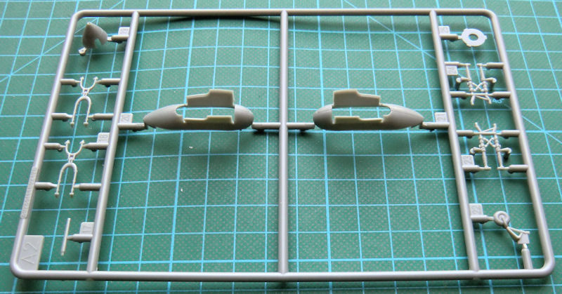 Bei der Bewaffnung hat sich HobbyBoss eine eher seltene Version herausgesucht. Hier gibt es die Il-2M3 mit zwei untergehängten NS-37 Kanonen unter der Tragfläche. Weiterhin gibt es noch vier ungelenkte Raketen. Diese sind recht einfach. Die beiden Fahrwerksverkleidungen sind jeweils ein Bauteil. Daran sind die Fahrwerksklappen anmodelliert. So stimmt der Winkel schon mal.