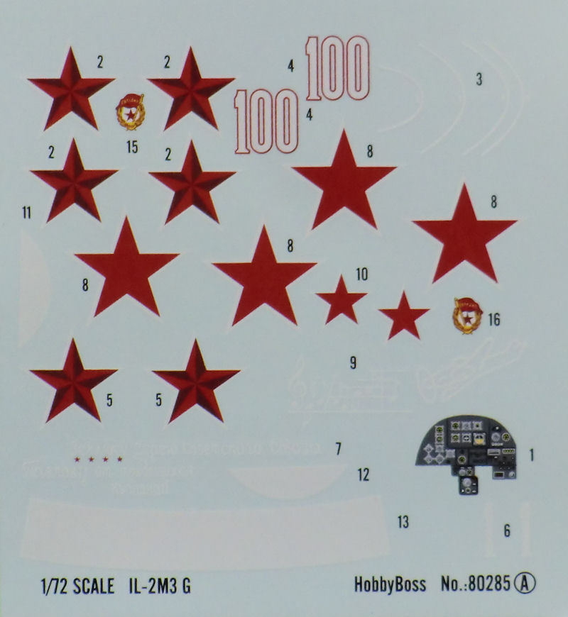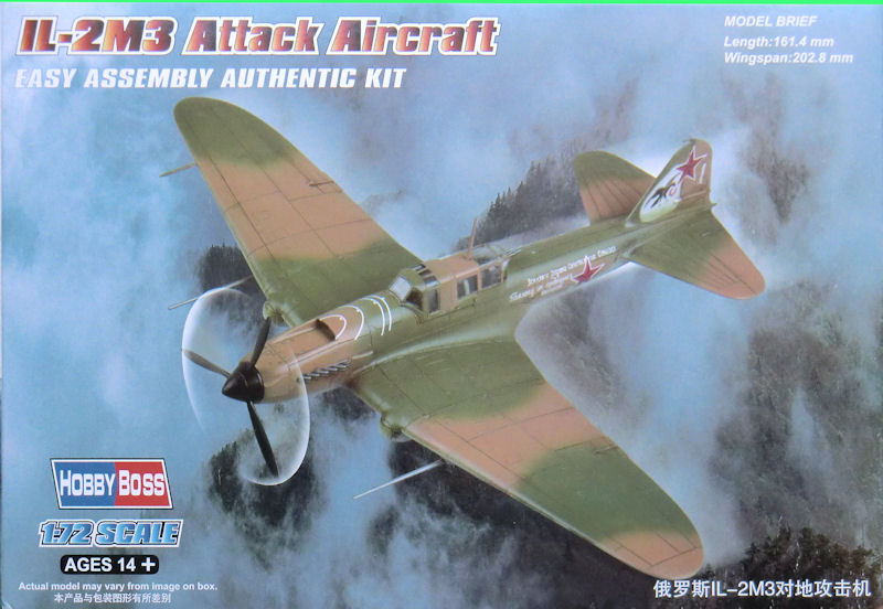 Bausatz: HobbyBoss hat in der Reihe der neuen Easy Kits auch eine Iljuschin Il-2M3 herausgebracht. Bei Easy Model gibt es das bemalte Fertigmodell und HobbyBoss bringt hier den Bausatz für Anfänger heraus. In dem attraktiven Stülpkarton befinden sich sehr gut verpackt zwei Großbauteile sowie zwei hellgraue Spritzgussrahmen mit 33 Teilen, einem klarem Spritzgussrahmen mit einem Teil, einem Kunststoffring, zwei Decalbögen, die einfache Bauanleitung mit mehrfarbiger Bemalungsanleitung. Das Ausgleichsgewicht am Seitenruder sowie das Staurohr sind gleich mit anmodelliert.