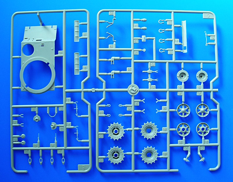 Ein detailliertes Review mit nachmessen und Konkurrenzvergleich wird es sicher in nicht all zu ferner Zukunft bei PMMS geben. Ich habe ehrlich gesagt keine Lust dazu, zumal das Trumpeter Modell ja als ziemlich gut gilt. Was bekommt man also in der Box: 186 Teile auf 8 Spritzlingen versprechen einen umfangreichen Bastelspaß. Die Abspritzung ist vollständig und recht sauber, jedoch nicht ohne Grat. Die Detaillierung der Teile ist sehr schön (siehe z.B. das Foto der Schweißnähte an der Wanne). Nervend wird sicher die Beseitigung der Auswerfermarken an der - ansonsten schönenen - Kette, aber Tamiya ist hier auch nicht besser ... es bleiben eben immer gewisse technologisch-wirtschaftliche Grenzen. Nach dem ersten Bericht von Terry Ashley zum KW-1 wird wohl auch etwas an der Passgenauigkeit zu arbeiten sein.