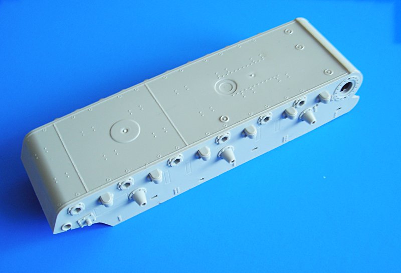 Zur Montage der Kettenabdeckungen liegen einige Photoätzteile bei, die das Modell aufwerten. Außerdem findet sich ein Stück Draht im Karton. Wenn man schon mal dabei ist, kann man ja auch gleich mal in der Zubehörszene schauen, ob sich nicht einige der Zurüstsätze von ABER, HAULER, EDUARD usw. verwerten lassen. Dies ist sicherlich Geschmackssache, aber bei 14,95 Euro Bausatzpreis hat man noch ein wenig finanziellen Spielraum.