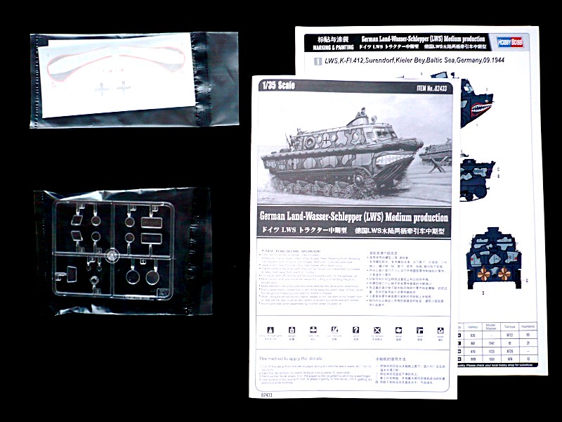 Bausatz: Nach gut einem Jahr hat Hobby Boss den zweiten LWS auf den Markt gebracht. Es handelt sich hier um ein Fahrzeug der mittleren Produktionsphase mit dem etwas anders gestaltetem Fahrwerk. Basierend auf den erst erschienenen LWS hat Hobby Boss noch 15 Spritzrahmen in den Karton dazu gelegt. Die Kritik von Holger Syrings First Look über den ersten LWS im Oktober 2008 wurde vom Hersteller erhört.