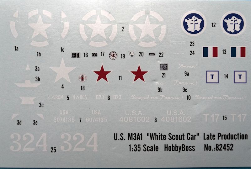 Fazit: Was Hobby Boss hier abliefert ist wirklich ganz großes Kino. Die Teilequalität und Detaillierung ist hervorragend umgesetzt worden. Besonders die sinnvolle Aufteilung der Bauteile, ohne diese in viele Kleinstteile aufzusplittern, ist sehr gut gelungen und überfordert auch den ungeübten Bastler nicht. Der Zusammenbau der insgesamt 549 Kunststoff- sowie zweiundsiebzig Ätzteile lässt großen Bastelspaß erwarten. Der Preis für den Bausatz ist völlig berechtigt und nicht übertrieben. Wer noch keinen Scout Car in seiner Sammlung besitzt, sollte sich diesen Bausatz unbedingt zulegen. Wer bisher nur den Scout Car von Zvezda oder Tamiya kennt, sollte hier mal unbedingt einen Blick drauf werfen. Das keine Figuren beiliegen, würde ich auch nicht als Manko sehen sondern das so, vielmehr, eine individuelle Präsentation in einem Diorama ermöglicht wird. Sehr empfehlenswert.