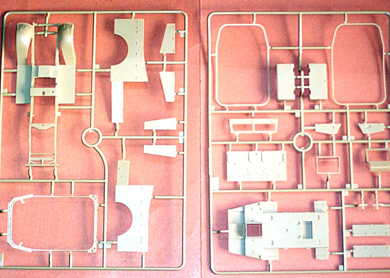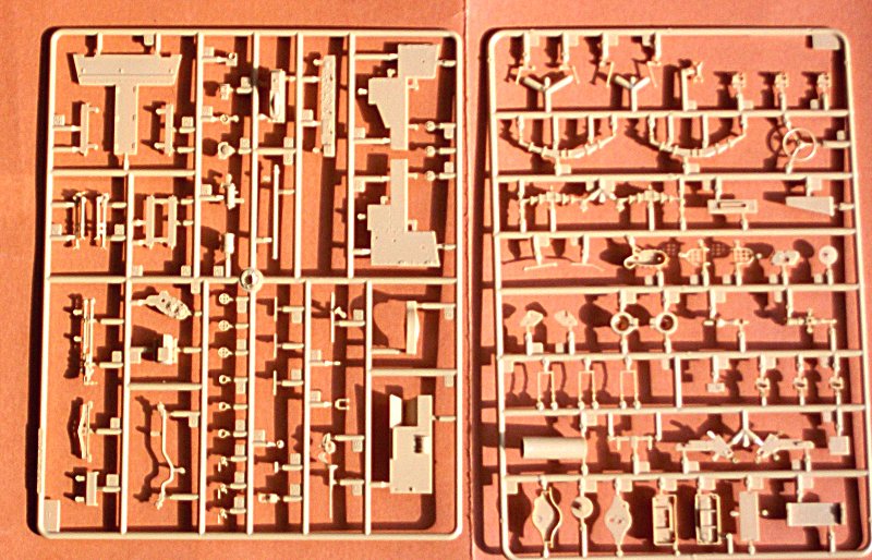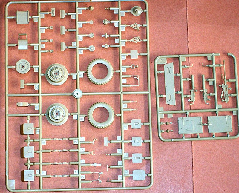 Zum Bausatz: Trotz der geringen Größe des Modells hat der Bausatz eine Menge Einzelteile. Er verfügt auch über einen detaillierten Motor und Chassisbereich. Auch der oben offene Kampfraum ist sehr gut detailliert. Der Bausatz ist dem alten MAX-Modell haushoch überlegen. Die beiden Brownings sind die ältere Wassergekühlte Version. Ein kleiner Ätzteilsatz für den Motorventilator und diverse Halterungen liegt auch bei. Die Frontfenster und die Scheinwerfer Gläser liegen als Klarsichtteile bei.