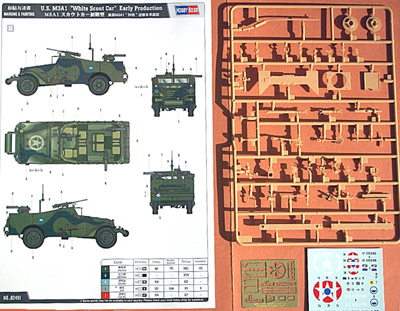 Zur Geschichte: Der M3A1 wurde ab 1938 produziert und wurde hauptsächlich bei den gepanzerten Einheiten und den Aufklärungseinheiten eingesetzt. Allerdings ist die Geländetauglichkeit des Fahrzeuges sehr eingeschränkt. Einschließlich der Typen M3A1E1 (Dieselmotor), M3A1E2 (mit gepanzerten Dach) und M3A1E3 (mit 3,7 cm Kanone auf Drehpivot) sind 21.000 Einheiten gebaut worden.